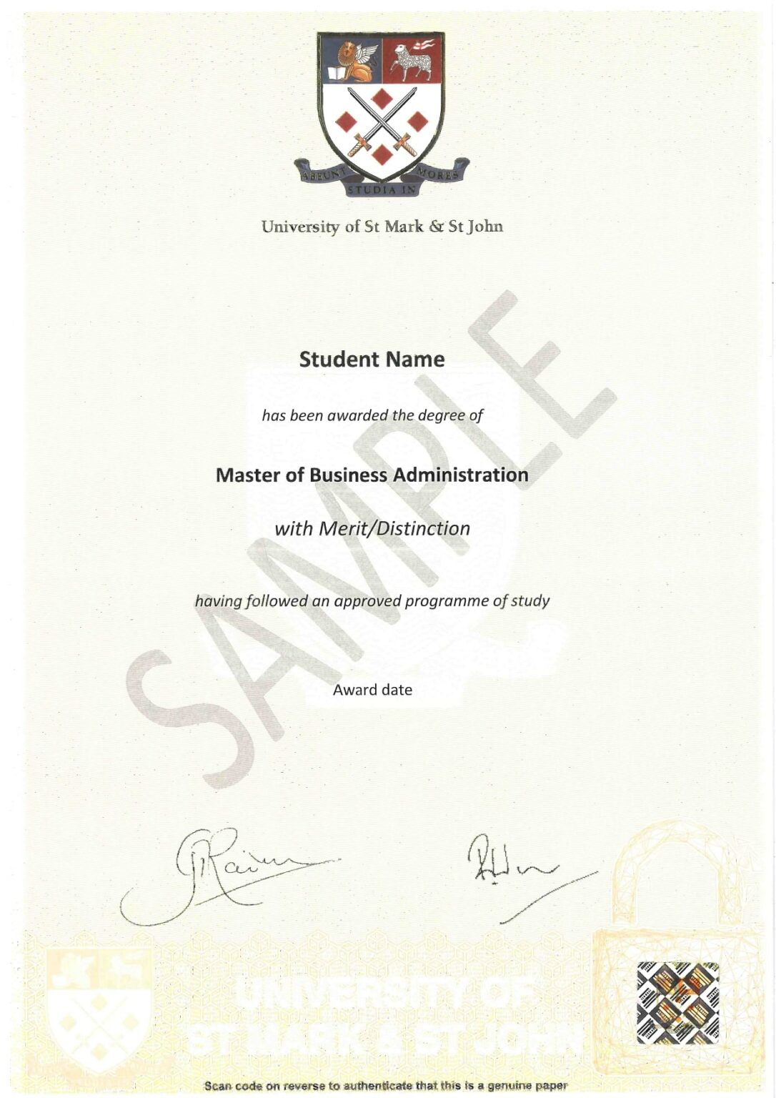 - MBA Degree from Plymouth Marjon University, UK